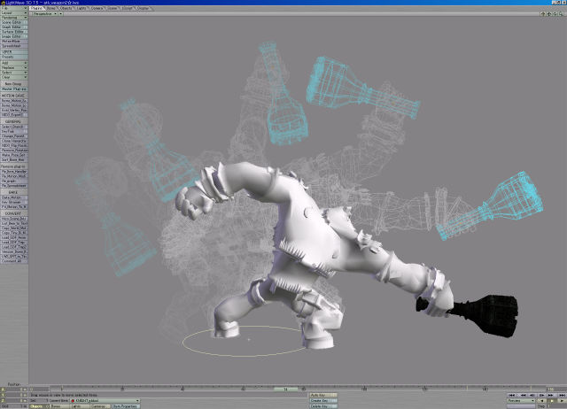 "Movement becomes wooden if purely controlled by a program, but also a pre-made animation won't fit in right. It is the combination which makes it work. When I saw this working in real time, I was more than a little impressed! I think it has become a truly wonderful system to combine the animator and programmer."